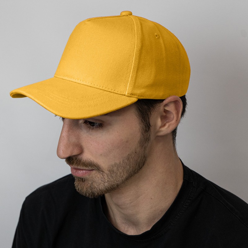 Плотные бейсболки для летних корпоративных мероприятий и промоакций на природе. Цвет, близкий к Pantone 1225 C. Модель имеет 5 клиньев без лобового шва и металлическую застежку. Бейсболку можно носить в любую погоду. Она станет востребованным аксессуаром у мужчин, женщин и подростков.
