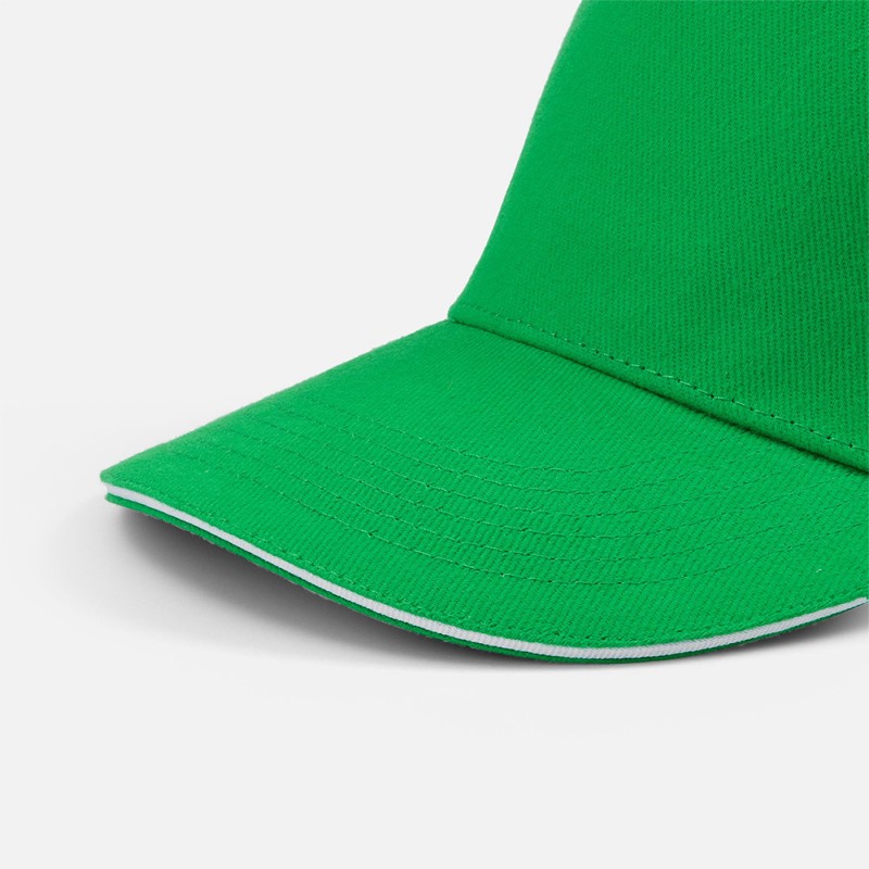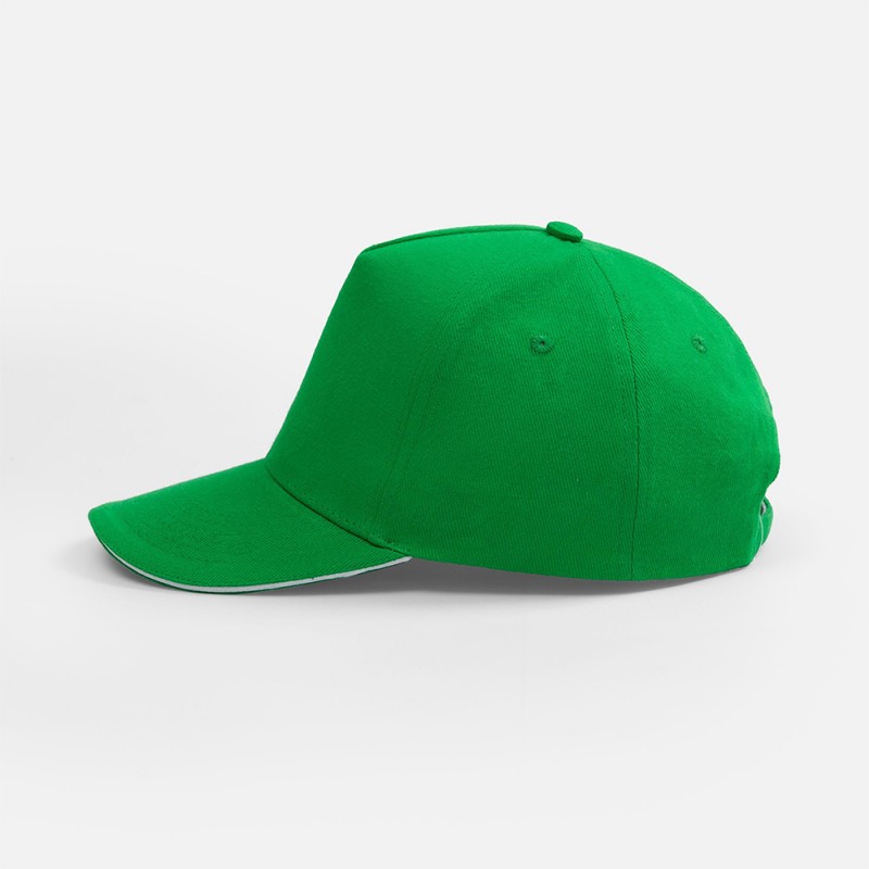 Бейсболки из 100% плотного хлопка зеленого цвета для летних корпоративных мероприятий и промоакций на природе.