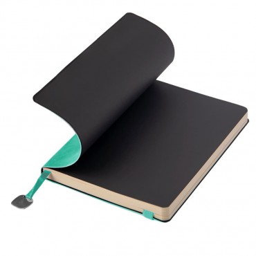 Ежедневники в гибком переплете с термоактивной обложкой бирюзового цвета и металлическим шильдом на ляссе. Недатированный блок. Каптал и ляссе в цвет обложки. Упаковка крафтовый сливбокс. Изящное и компактное изделие для планирования дня.