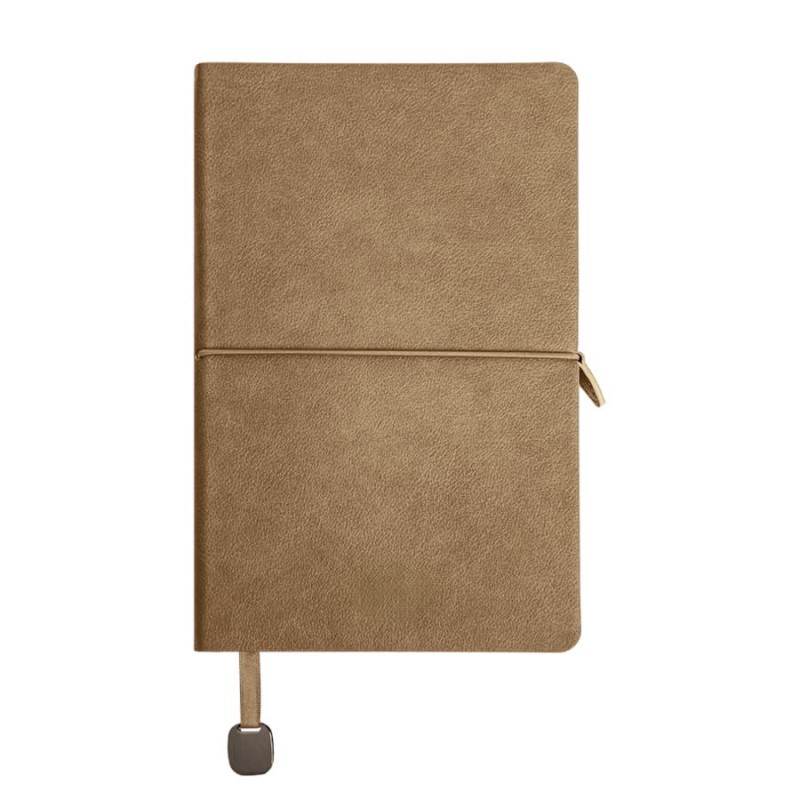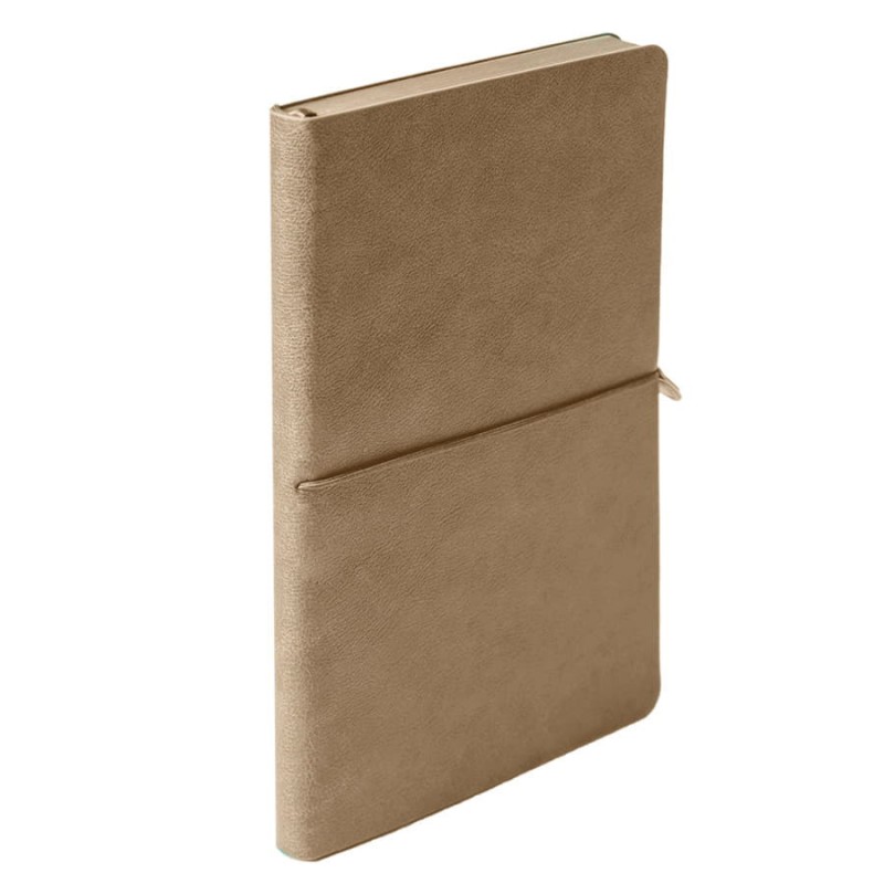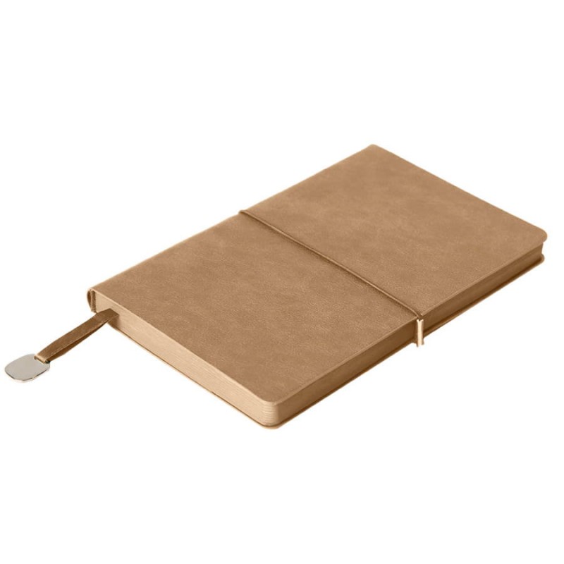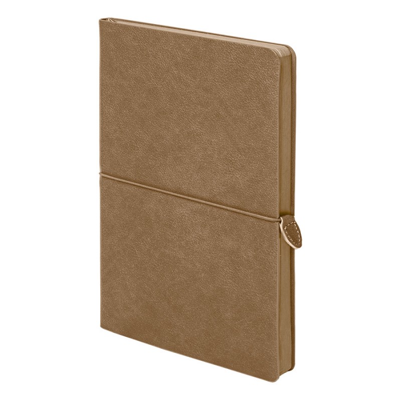 Стильный ежедневник с мягкой обложкой и горизонтальной фиксирующей резинкой, выполненный из термоактивного искусственного материала светло-коричневого цвета. Обрез в цвет обложки. Двойное ляссе с металлическим шильдом. Упакован в крафтовый сливбокс. Отличный подарок для сотрудников и партнеров.
