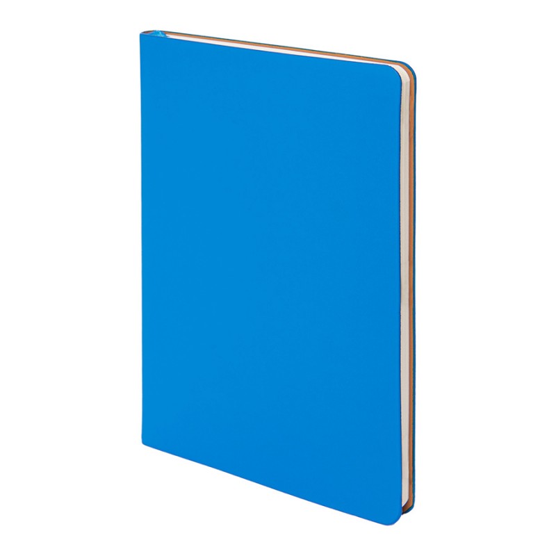 Стильный ежедневник с гибкой обложкой, выполненный из термоактивного искусственного материала голубого цвета.