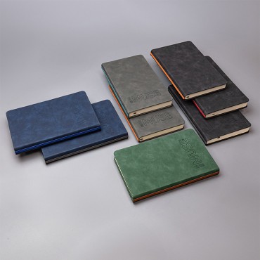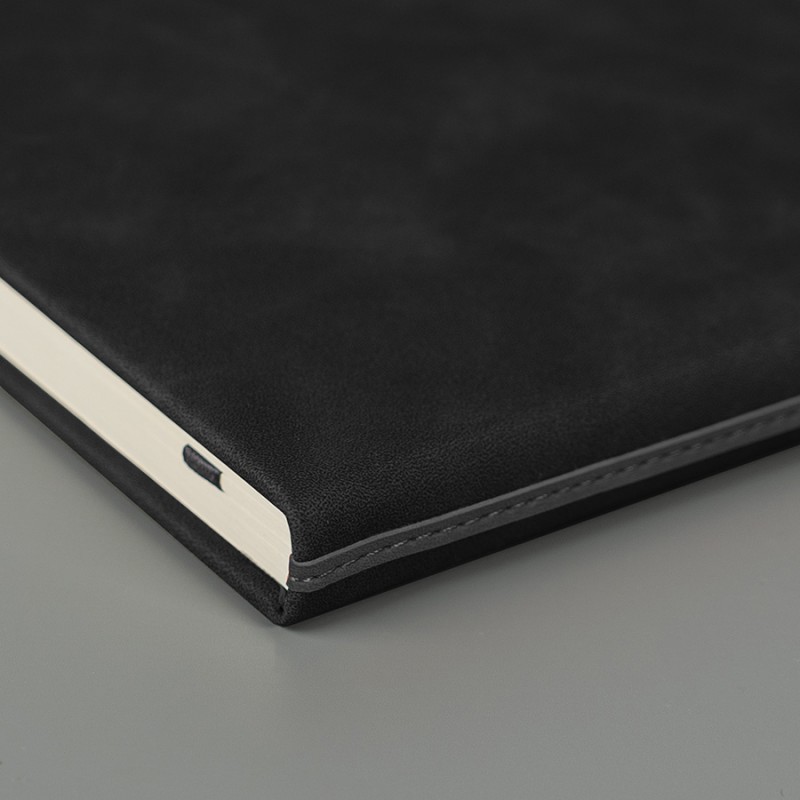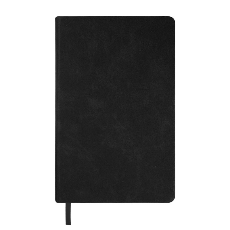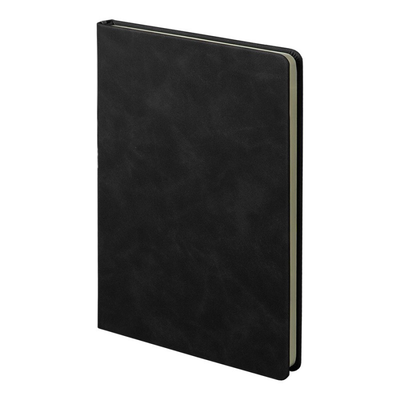 Стильный ежедневник с твердой обложкой, выполненный из термоактивного искусственного материала Luba черного цвета. Дополнен декоративной серой полосой на корешке.