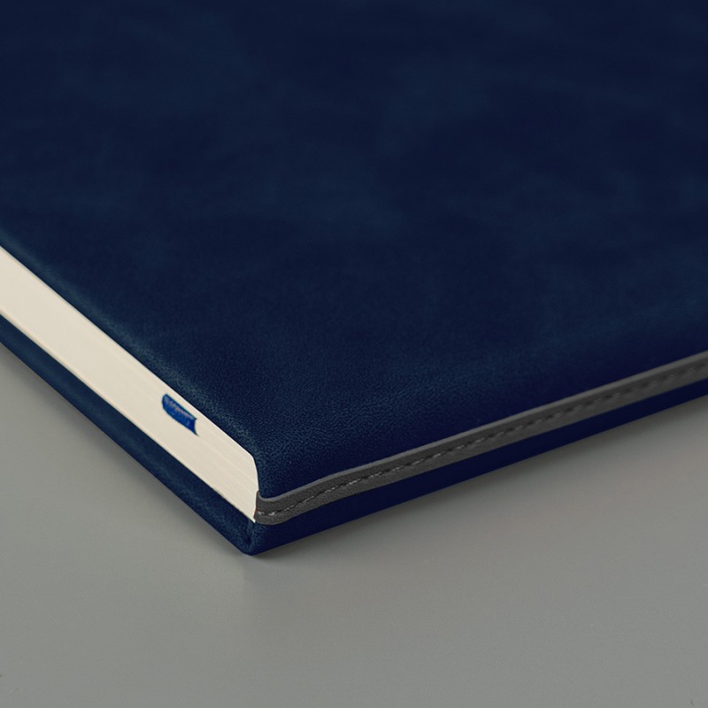 Стильный ежедневник с твердой обложкой, выполненный из термоактивного искусственного материала Luba темно-синего цвета. Дополнен декоративной серой полосой на корешке. Недатированный блок, 272 страницы. Скругленные углы. Бумага кремовая, плотность 70 гр. Форзац и нахзац - кремовые. Ляссе 7 мм в цвет обложки.