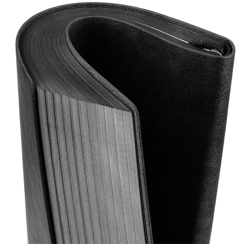 Ежедневник с гибкой обложкой из искусственной кожи Chester черного цвета, дополнен капталом и двойным ляссе.