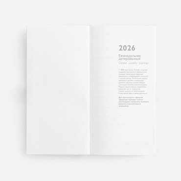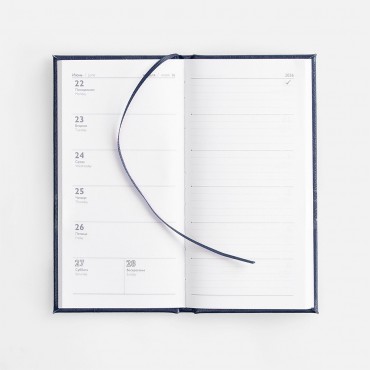 Еженедельник с твердой обложкой с поролоном из искусственной кожи Sarif синего цвета, дополнен декоративной строчкой и тиснением года на обложке. Каптал и ляссе в цвет обложки. Блок c календарной сеткой и справочными материалами. Датирован на 2026 год.