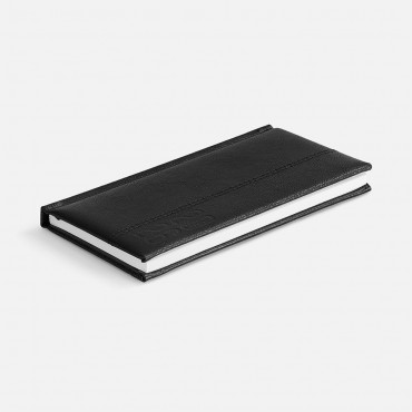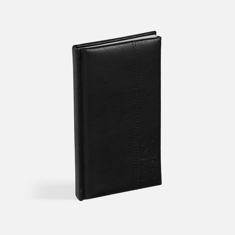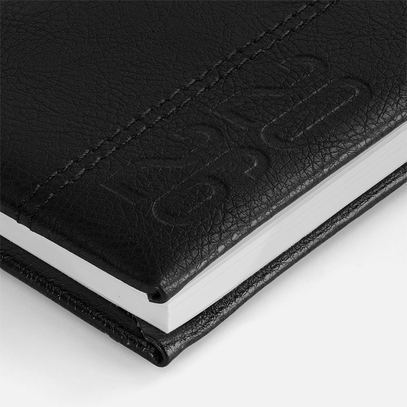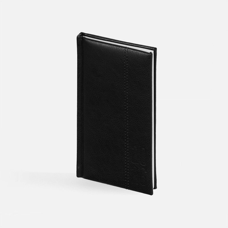 Еженедельник с твердой обложкой с поролоном из искусственной кожи Sarif черный цвета, дополнен декоративной строчкой и тиснением года на обложке. Каптал и ляссе в цвет обложки. Блок c календарной сеткой и справочными материалами. Датирован на 2026 год.