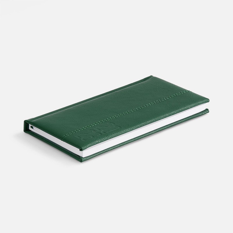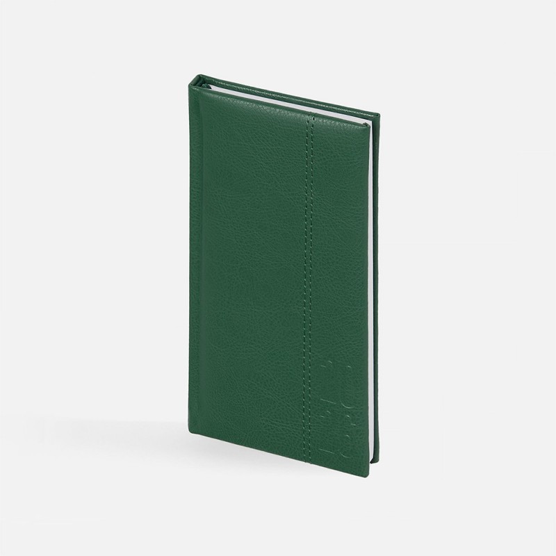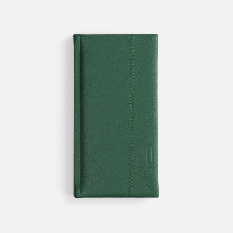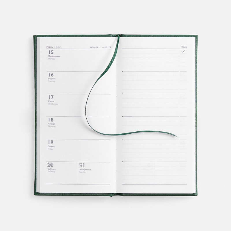 Еженедельник с твердой обложкой с поролоном из искусственной кожи Sarif зеленого цвета, дополнен декоративной строчкой и тиснением года на обложке. Каптал и ляссе в цвет обложки. Блок c календарной сеткой и справочными материалами. Датирован на 2026 год.