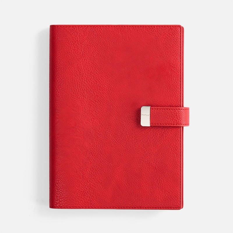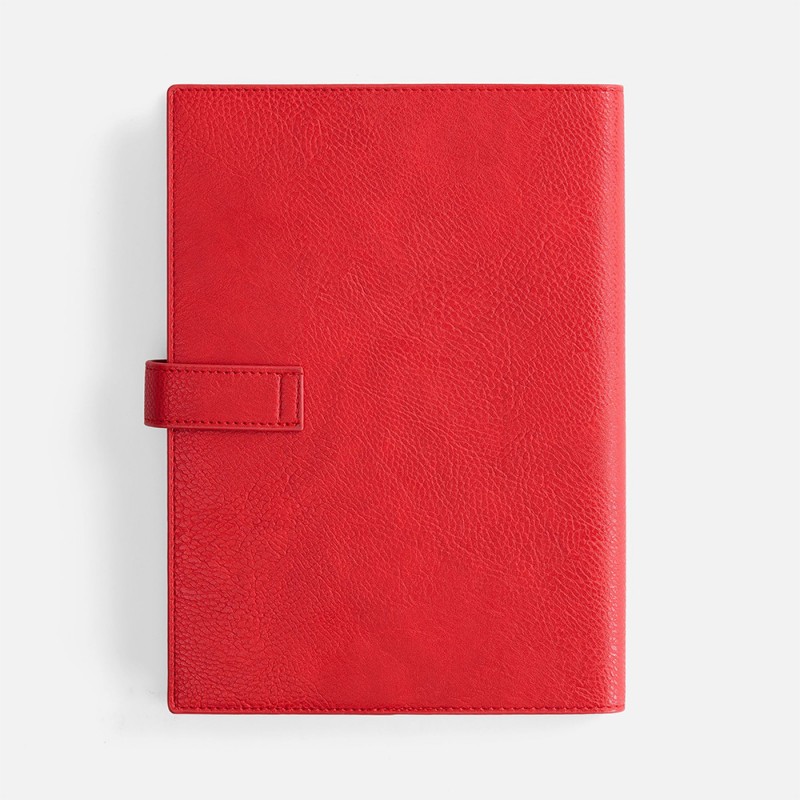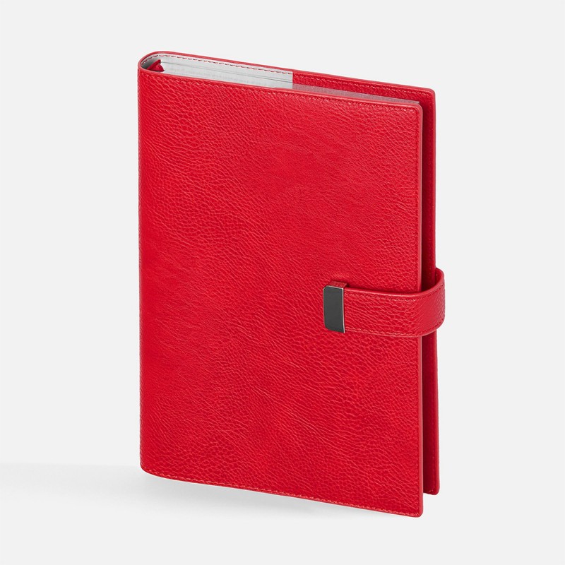Погрузитесь в стиль и организацию с этим элегантным ежедневником. Его мягкая обложка из красной искусственной кожи приятна на ощупь и выглядит по-настоящему дорого. Практичность воплощена в деталях: съемная обложка позволяет легко менять блоки, а надежная застежка-хлястик с металлическим шильдом надежно защищает ваши записи.