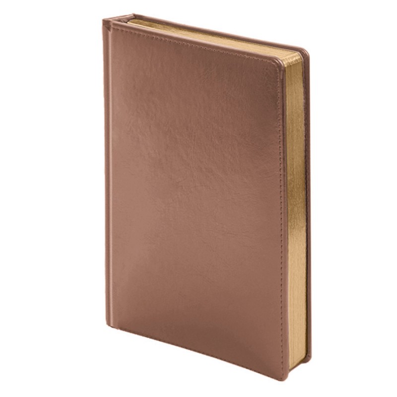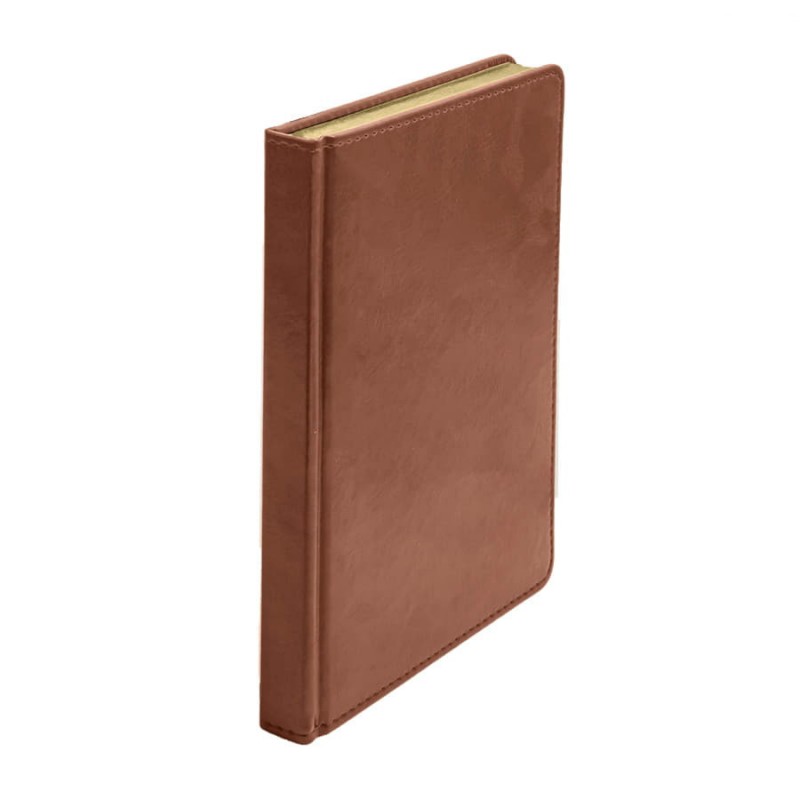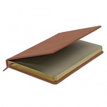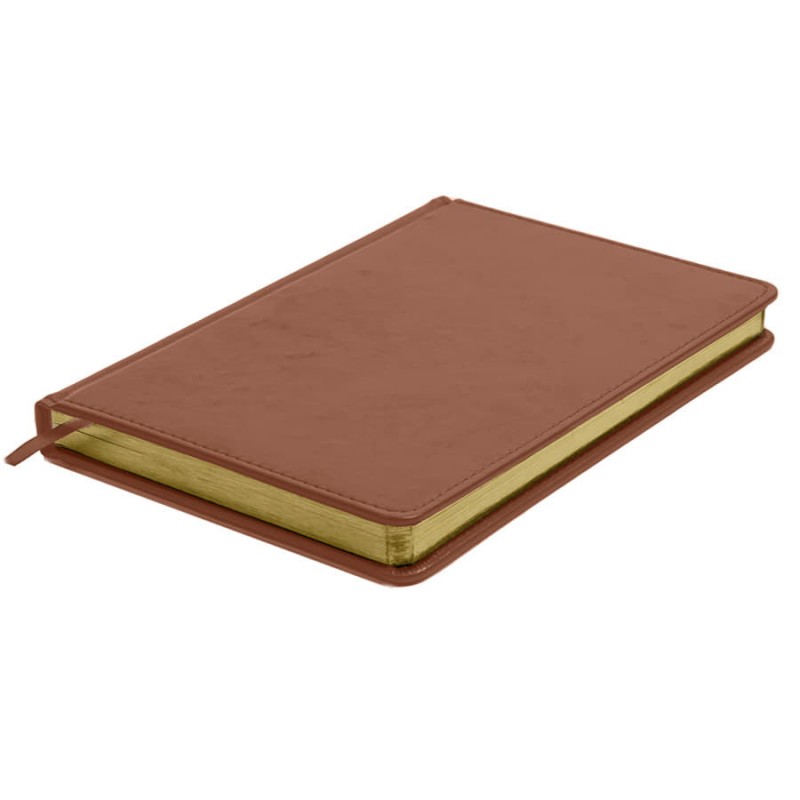Классический ежедневник в твердом переплете с прошивкой по краю. Обложка изготовлена из искусственной кожи Nebraska коричневого цвета, обладающей приятной на ощупь поверхностью и недатированным блоком с золотым срезом. Каптал и ляссе в цвет обложки.