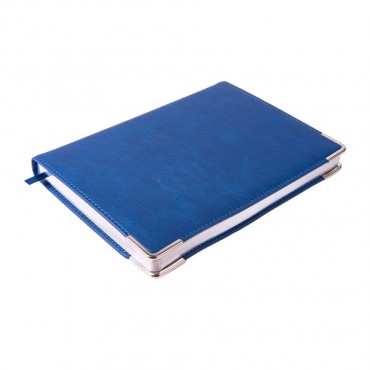 Классический ежедневник в твердом переплете. Обложка изготовлена из искусственного материала синего цвета, имитирующего фактуру натуральной кожи. Прошивка по периметру. Серебристые уголки и обрез. Недатированный блок. Упакован ежедневник в прозрачный полибэг.