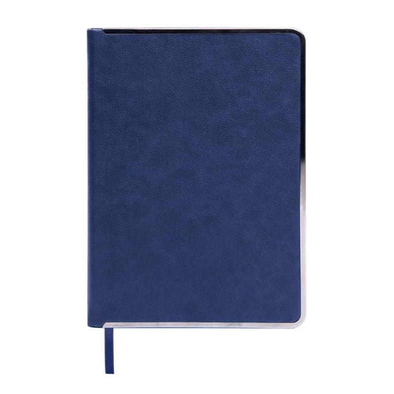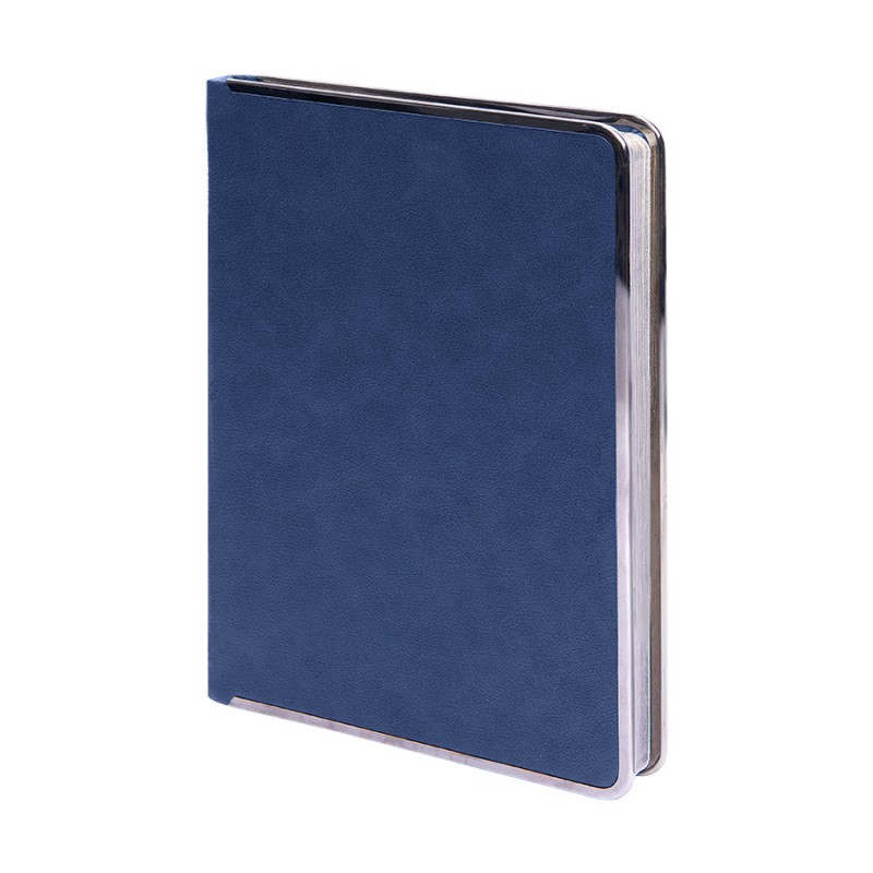 Классический ежедневник в твердом переплете. Обложка выполнена из искусственного материала синего цвета, имитирующего фактуру натуральной кожи. Металлическая окантовка по периметру. Обрез в цвет окантовки. Недатированный блок. Упакован ежедневник в крафтовый сливбокс.