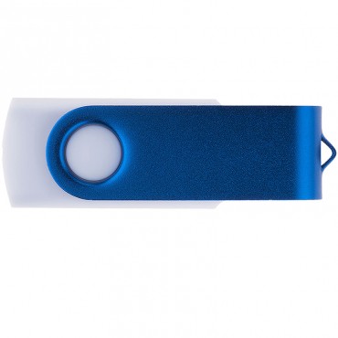 Флешка с пластиковым корпусом белого цвета и синей металлической скобой. Корпус имеет покрытие софт-тач. Широкая цветовая палитра.