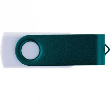 Флешка с пластиковым корпусом белого цвета и зеленой металлической скобой. Корпус имеет покрытие софт-тач. Широкая цветовая палитра.