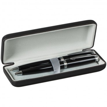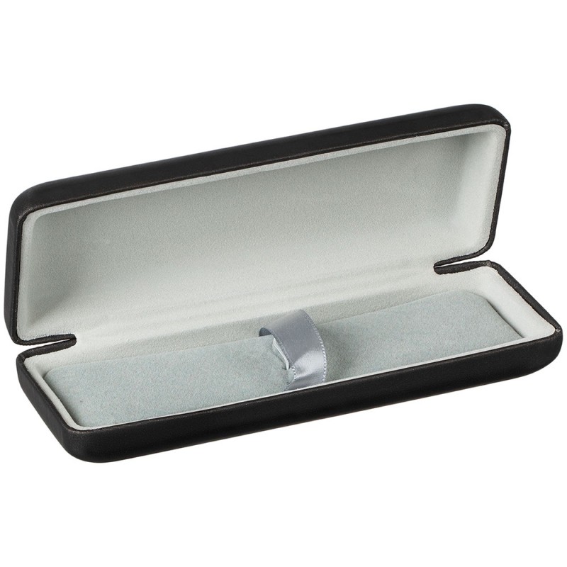Элегантный черный цвет, лаконичная форма, надежный механизм пружины — ручка, вложенная в этот футляр, станет законченным подарком.