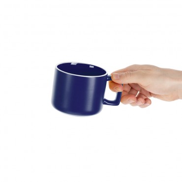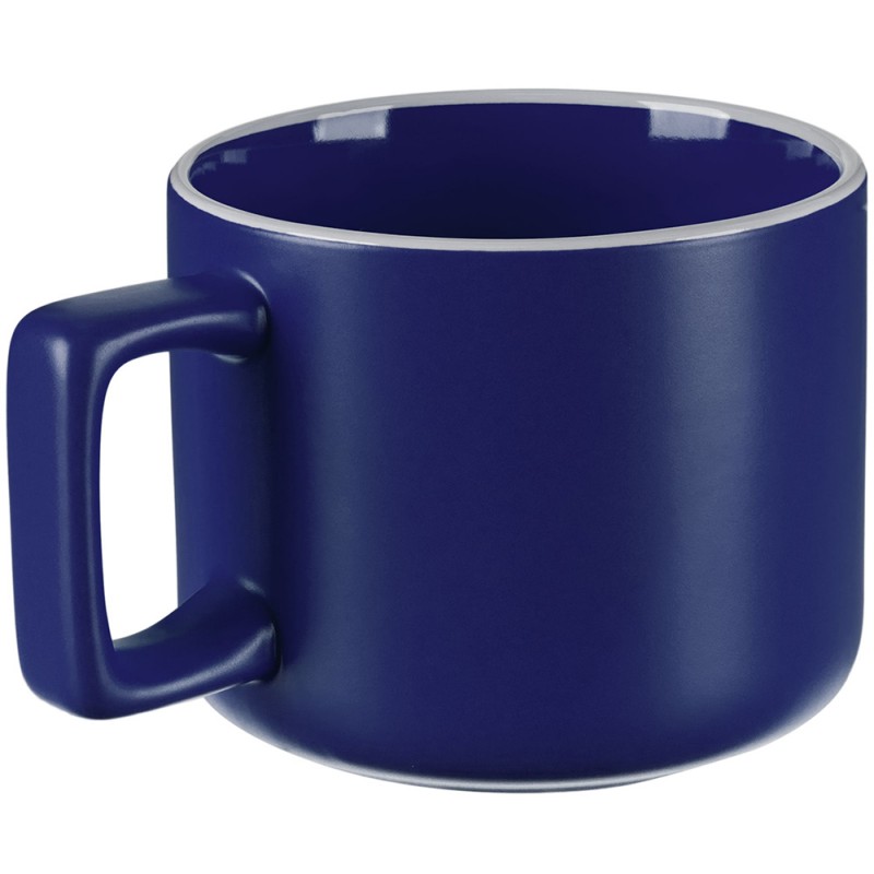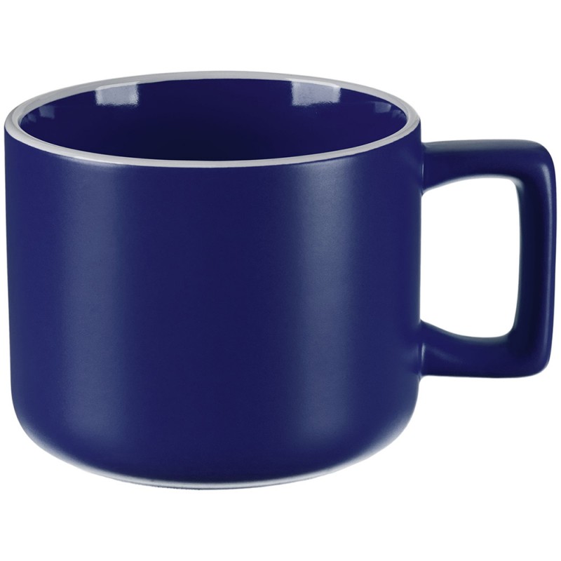 Большая кружка простой формы темно-синего цвета в скандинавском стиле. Матовая глазурь снаружи и глянцевая внутри, белая линия по ободку.