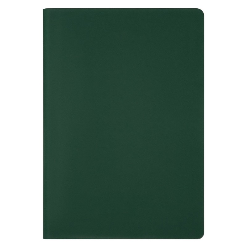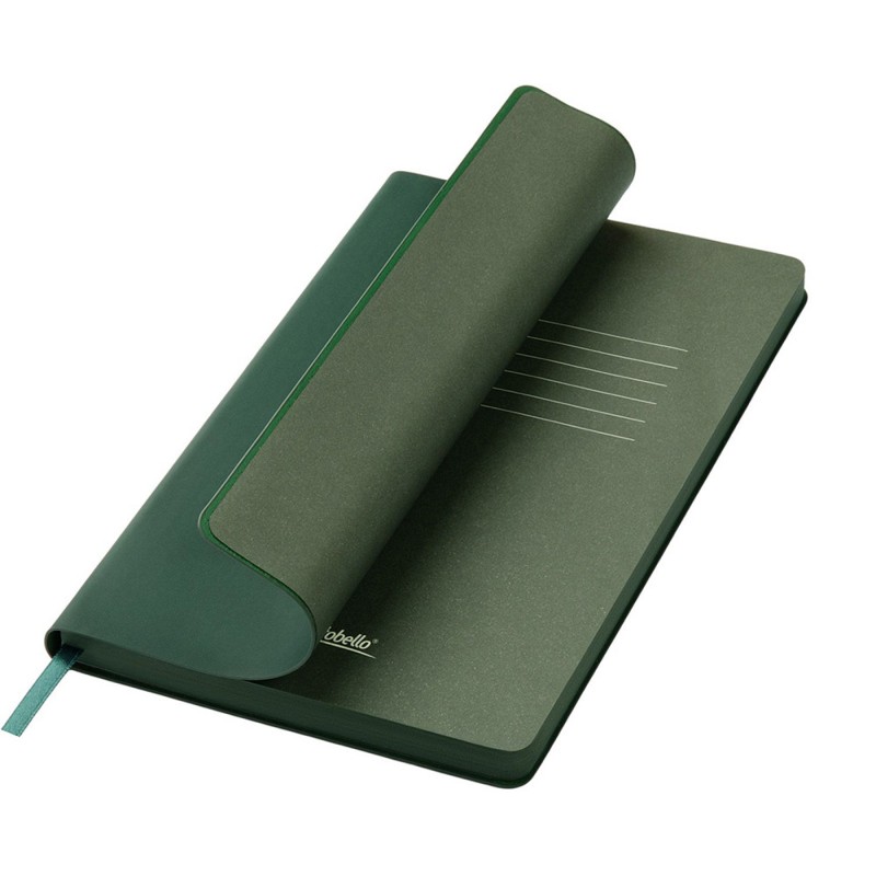 Ежедневник с гибкой обложкой, со скругленными уголками, из мягкого, слегка прорезиненного материала, имитирующего искусственную кожу с эффектом Soft Touch. Цвет обложки – темно-зеленый. Форзац, нахзац и срез в тон обложке. Недатированный блок из шелковистой тонированной бумаги. Атласное темно-бирюзовое ляссе. Ширина закладки 6 мм.