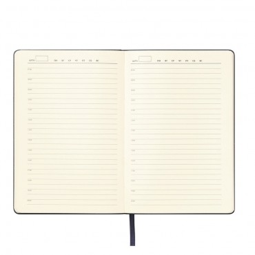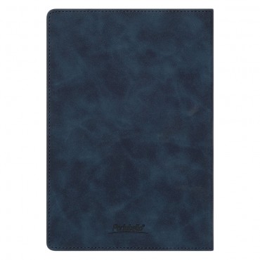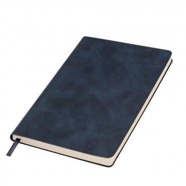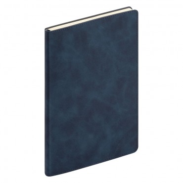 Изделие с гибкой обложкой, выполненной из высококачественной искусственной кожи. Поверхность ежедневника матовая с приятной шелковистой текстурой, напоминающей замшу. Цвет обложки синий. Прошивка по периметру в тон материала обложки. Форзац, нахзац и срез кремового цвета. Недатированный блок выполнен из шелковистой тонированной бумаги. Одинарное атласное ляссе 6 мм.
