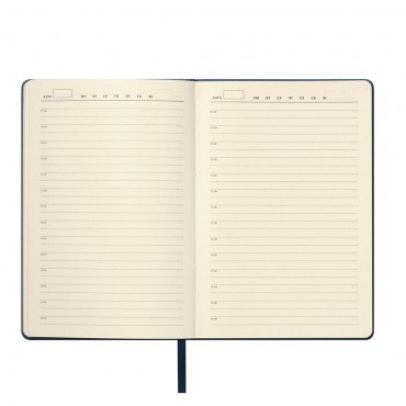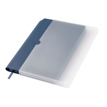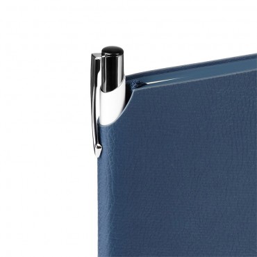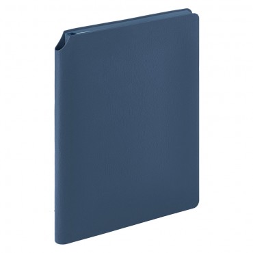Ежедневник с гибкой обложкой, выполненной из высококачественной искусственной кожи. Поверхность ежедневника матовая, текстурированная с небольшим рельефом под натуральную кожу. Цвет обложки синий. В верхнем углу на корешке расположен держатель для ручки. Форзац, нахзац и срез - синего цвета. Недатированный блок выполнен из шелковистой тонированной бумаги. Одинарное атласное ляссе 6 мм в цвет обложки.