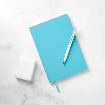 Ежедневник Spark лазурного цвета — это воплощение свежести, ясности и безграничного вдохновения. Гибкая обложка из высококачественной искусственной кожи нежного лазурного оттенка с мягкими скругленными уголками напоминает о чистоте летнего неба и морской глади. Матовое покрытие Soft Touch с деликатным пудровым эффектом смягчает яркость, даря неповторимое тактильное удовольствие. Внутри кремовые страницы, форзац и срез блока создают мягкий и гармоничный дуэт, а элегантное лазурное атласное ляссе добавляет завершающий акцент легкости и свободы.