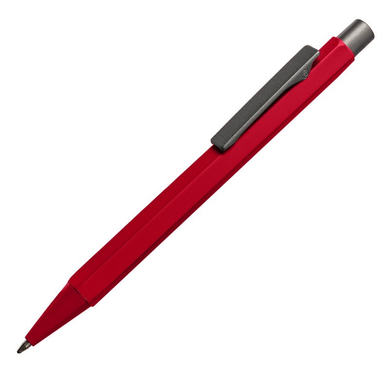 Стильная металлическая ручка красного матового цвета выглядит презентабельно и солидно. Вес достаточно тяжелый. Корпус ручки имеет шестигранное сечение.