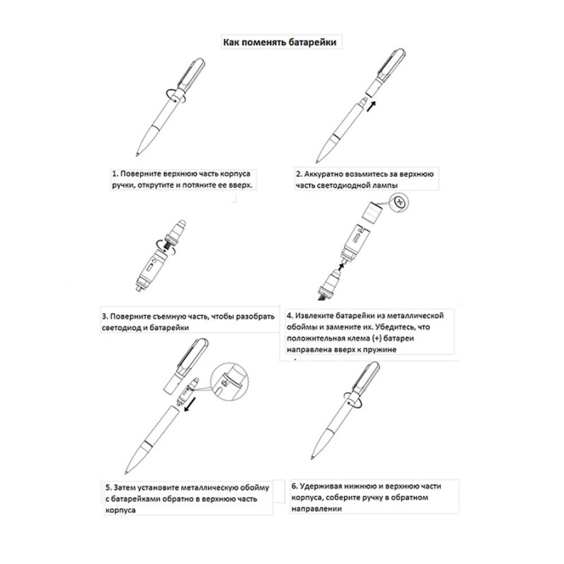 • Встроенная батарейка и лампочка для подсветки (подсветка возможна только после гравировки верхней части корпуса).