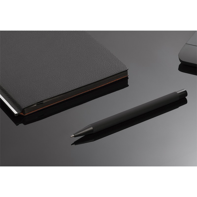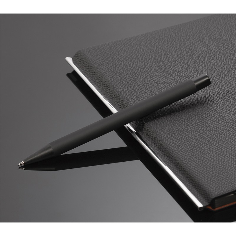 Металлическая ручка с прорезиненным корпусом и уникальным дизайном - ручка без клипа. Такая конструкция позволяет выполнять круговую гравировку всего корпуса ручки (360°), позволяя таким образом нанести максимальное количество информации.