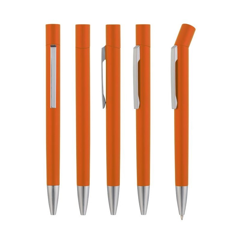 Корпус ручки выполнен из металлизированного ABS-пластика, оранжевая ручка с матовым пластиком.