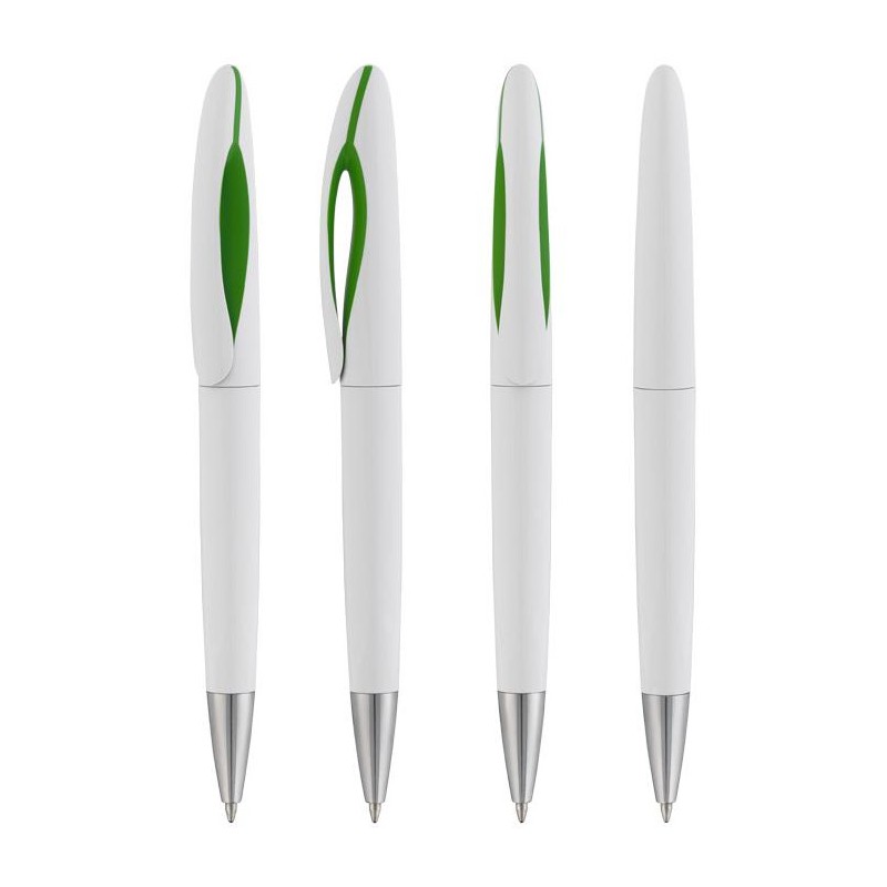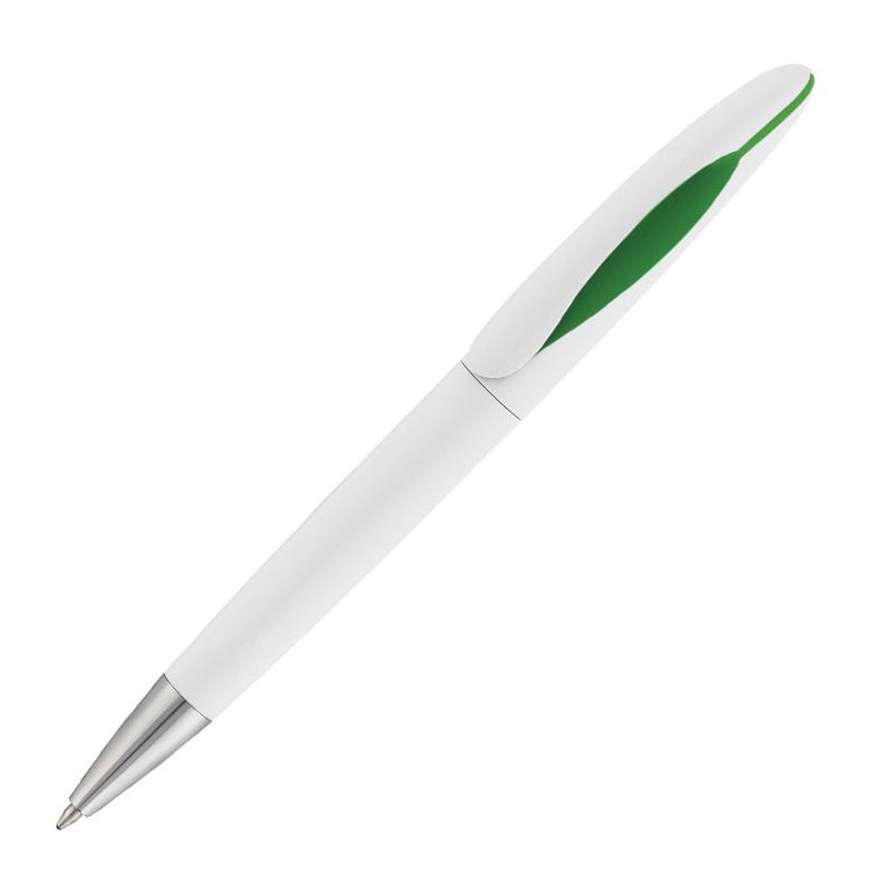 Корпус ручки белый, клип - зеленого цвета.