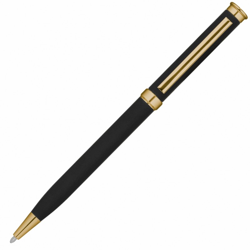 Ручка из металла с приятной на ощупь поверхностью soft-touch. Матовый черный корпус, золотистые детали.
