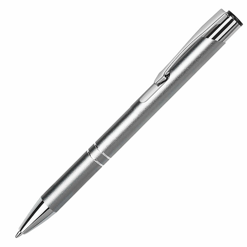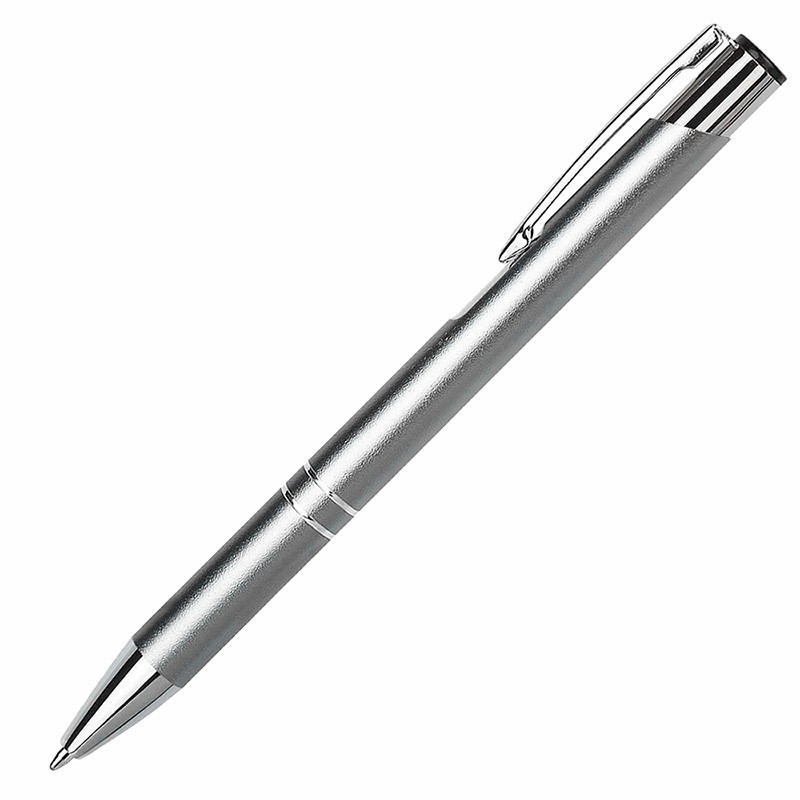 Ручка шариковая в корпусе с благородным матовым металлическим блеском.
