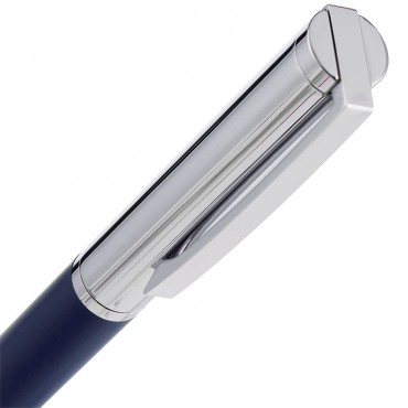 Металлическая шариковая ручка с покрытием софт-тач и хромированными деталями.