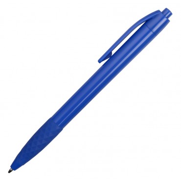 Пластиковая ручка синего цвета с оригинальным резиновым гриппом, повторяющим форму ограненного алмаза, в цвет ручки, обеспечивающим комфортное письмо.