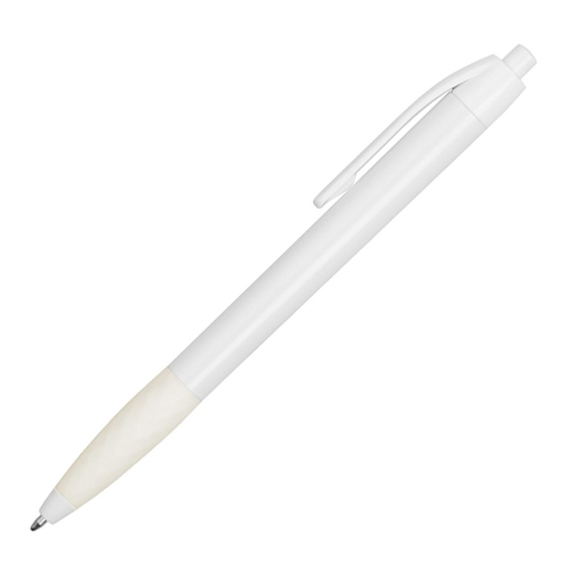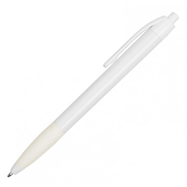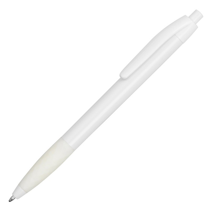 Белая пластиковая ручка с оригинальным резиновым гриппом, повторяющим форму ограненного алмаза, в цвет ручки, обеспечивающим комфортное письмо.