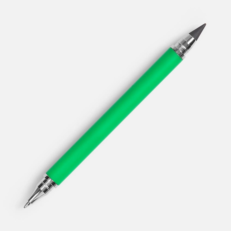 Это пишущее устройство объединило в элегантном матовом корпусе две классических функции. С одной стороны — удобная ручка со сменным стержнем, с другой — инновационный вечный карандаш. Его пишущий узел изготовлен из особо прочного сплава на основе графита, что делает его практически вечным и избавляет от необходимости в точилке. Для сохранности кончиков предусмотрены защитные колпачки. Цвет модели — ярко-зеленый.