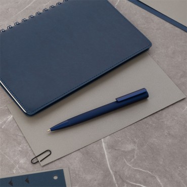 Шариковая ручка Aspen привлекает внимание своим лаконичным дизайном. Синий корпус с эффектным матово-металлическим покрытием Soft Touch гармонично сочетается с полированными металлическими элементами. Это не только стильный аксессуар, но и удобный инструмент для письма: покрытие предотвращает скольжение, а слайдерный механизм и качественный стержень делают процесс письма легким и приятным.