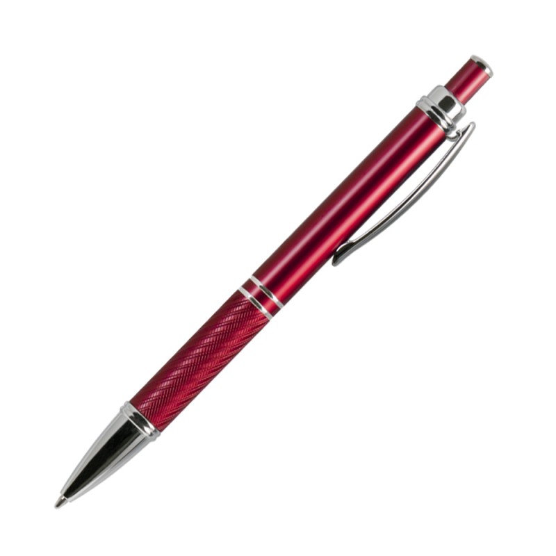 Ручка изготовлена из алюминия с хромированными элементами, красный корпус отделан гравировкой. Надежный механизм подачи стержня. Синие чернила. Ручка рассчитана на 1000 м непрерывного письма.