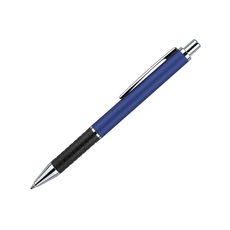 Ручка с корпусом из лакированного металла и блестящими хромированными деталями, прорезиненная мягкая зона грифа черного цвета. Кнопочный механизм.