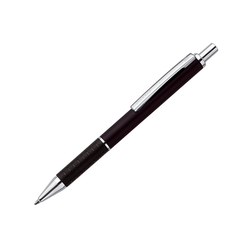 Ручка с корпусом из лакированного металла и блестящими хромированными деталями, прорезиненная мягкая зона грифа черного цвета. Кнопочный механизм.