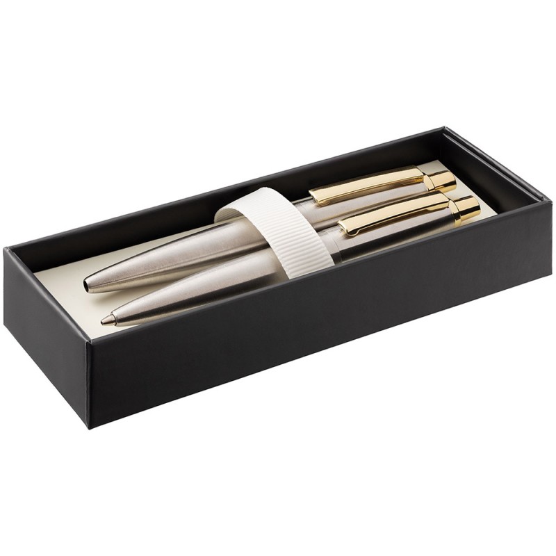 Механический карандаш и ручка Poetica — это благородная классика и элегантность в металлическом корпусе. Эргономичная форма и выигрышный легкий золотистый оттенок корпуса делают элементы набора неотъемлемой частью делового образа и персонального стиля.
