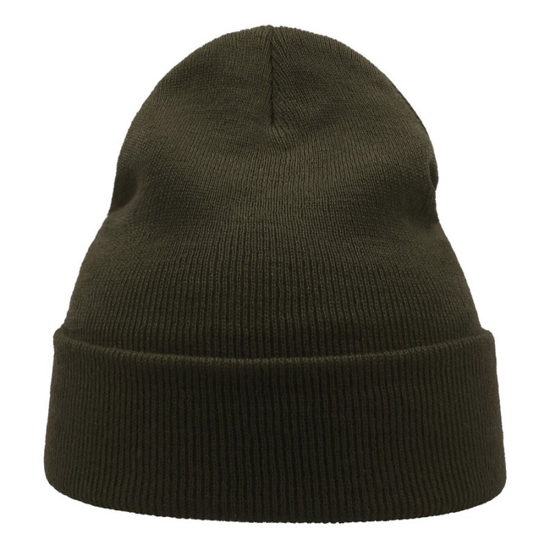 Двойная вязаная шапка с отворотом оливкового цвета.