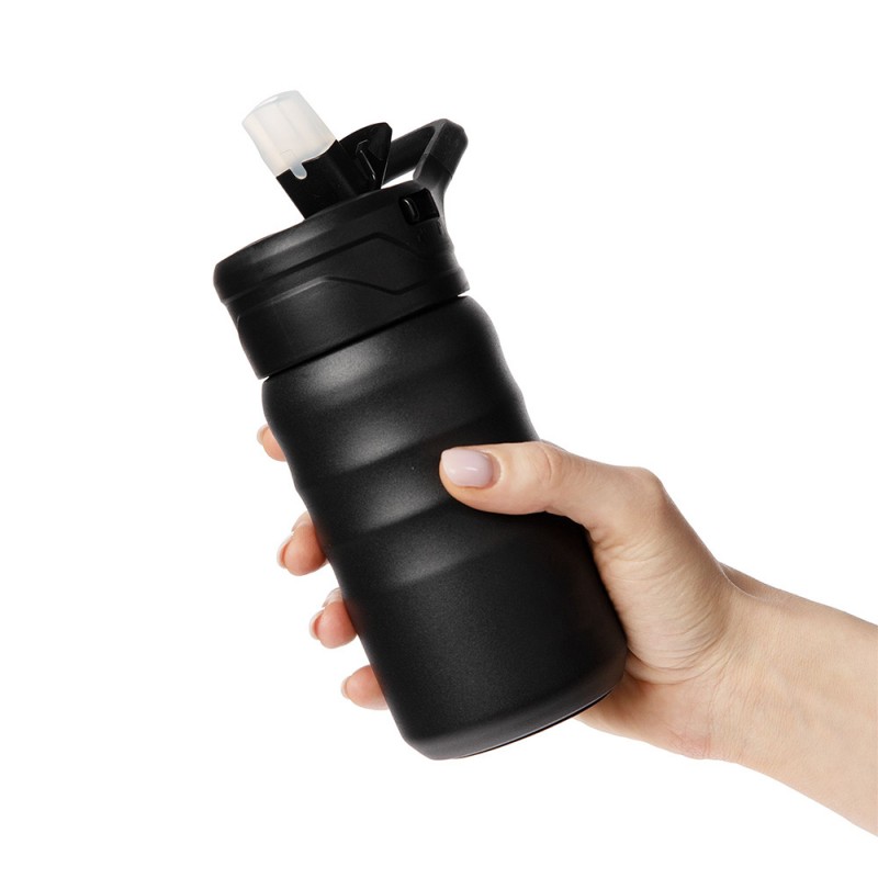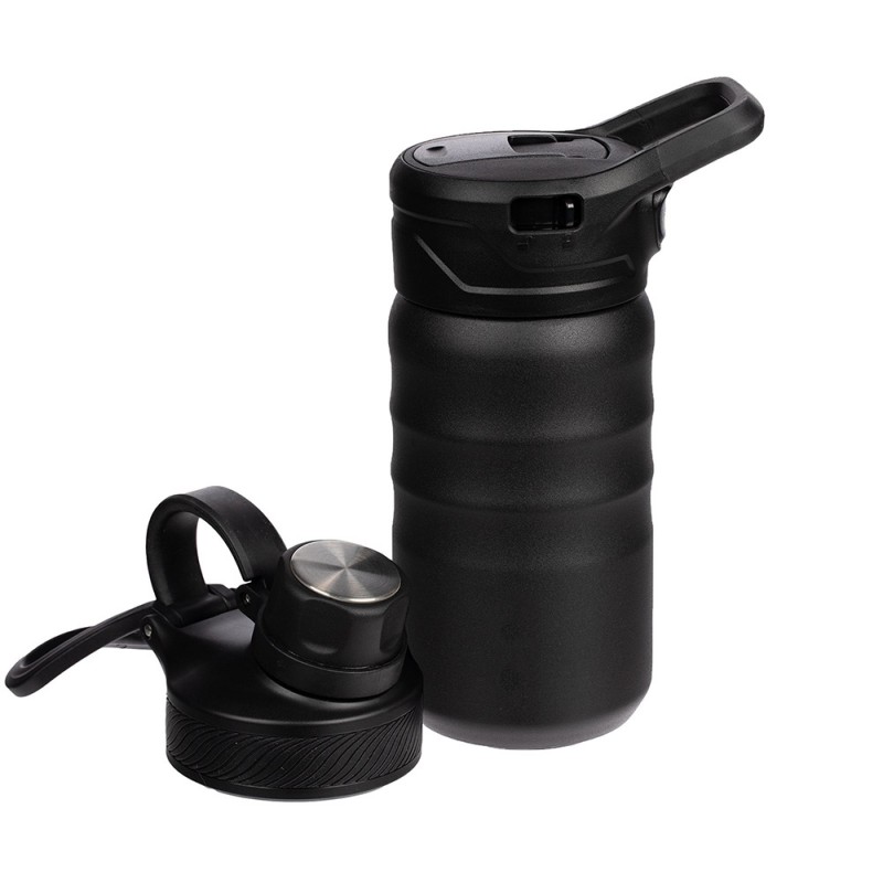 Fujisan — это термос, спортивная бутылка и термокружка одновременно. Две разные по функционалу и дизайну крышки, которые идут в комплекте с металлическим корпусом, позволяют максимально удобно использовать термостакан дома, на прогулке или в спортивном зале. Цвет корпуса черного цвета.